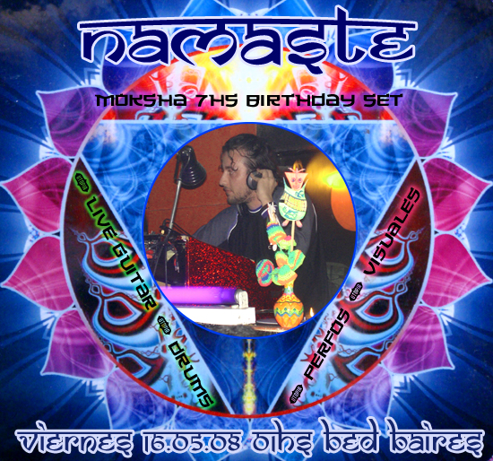 »back to topMoksha (Harmonia Recs/Dancing Budhas) 7hs Special Birthday Set + Live Guitar By Dr Benway + Live Drums By Tristan Suarez.