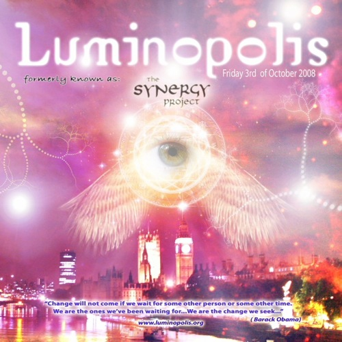 Luminopolis (formerly The Synergy Project) is a magical indoor festival, combining musicians, Djs, Vjs, performers, and artists from all corners of creativity, joined by various proactive NGO’s and charities with the expressed aim to make a difference.